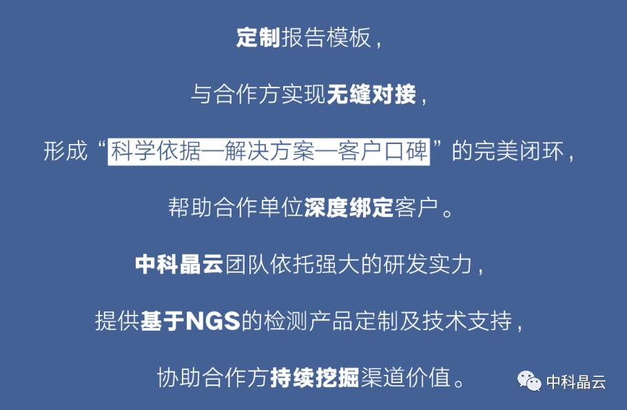 近年来,中科晶云团队致力创新技术在精准医疗市场的转化应用,在国内最早将云计算技术与基因组大数据分析相结合,以更专业的检测技术、更优质的检测服务、更精准的数据分析、更权威的医学解读,打造了包括晶妍TM肤质基础评估、晶苗TM儿童基因检测、晶孕TM基因检测、晶预TM全基因体检、晶预TM女性四癌风险评估、晶预TM遗传性肿瘤风险评估、晶安TM全基因检测在内的多款个人健康管理基因体检产品,助您预防疾病,维护健康,把握未来,享受人生!